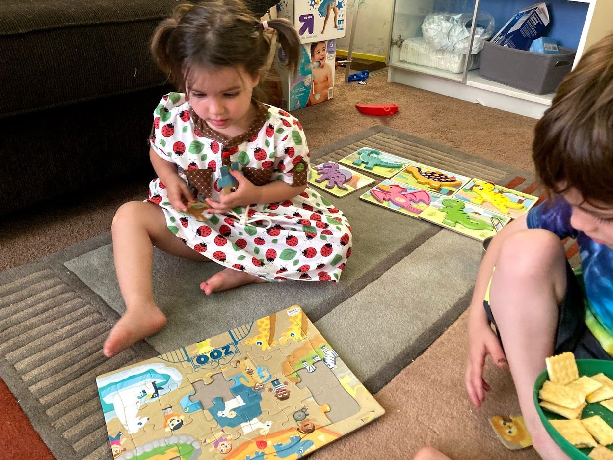 I sized down to 3t, because Saira is only 2 and a half. So, I had to cut out and construct the pattern again. I have actually kind of been getting away with just making them both 5t items, because I know she will grow in to hers, and he can always wear things I make for her until she gets big enough. Not the case with a dress though.
