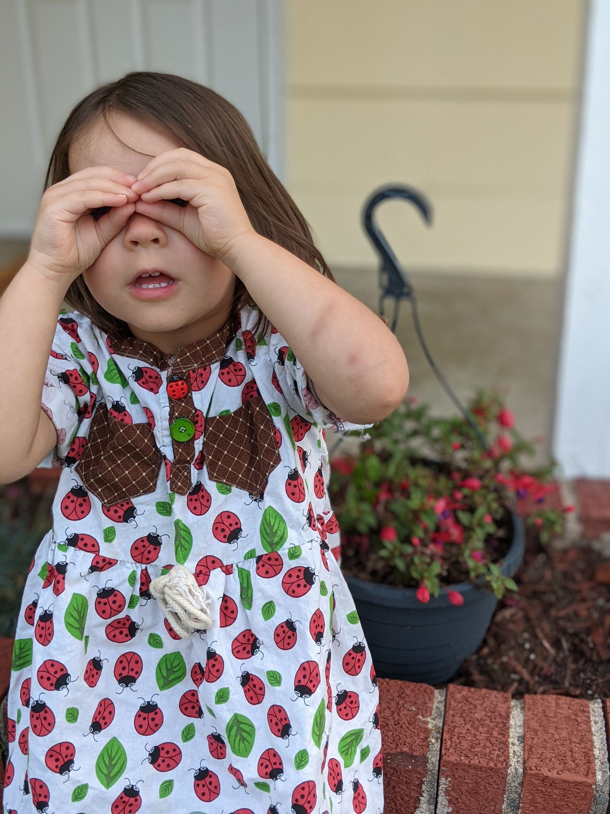 We went out for lunch later, and she wore her ladybug dress to the restaurant. The waitress commented on how cute it was multiple times! Saira, in her shy and adorable way, looked proud of herself for being a big girl in such a beautiful princess dress.