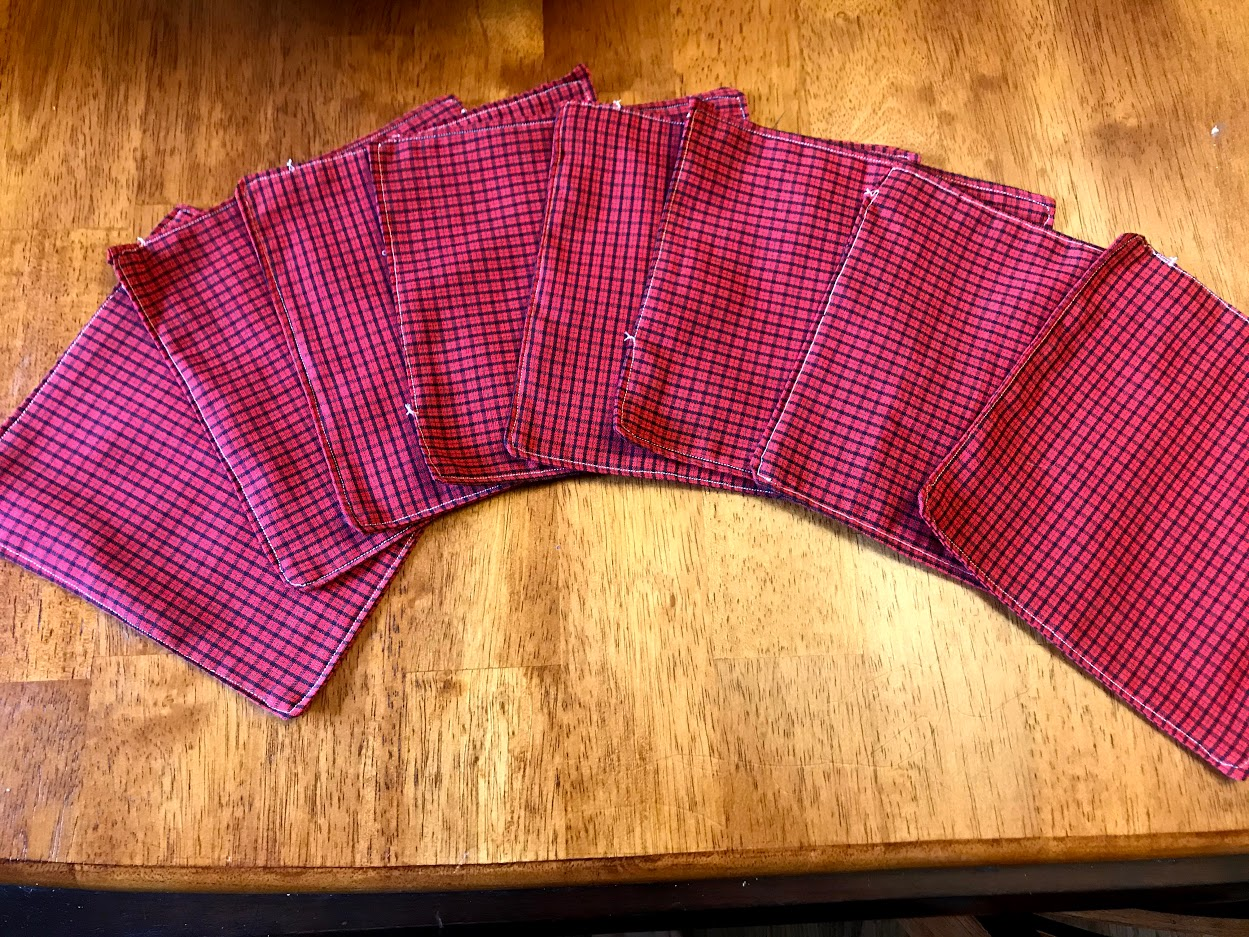 I'm not going to go through this pattern step by step, because the link above does that. I will say that it's nice to make something with good utility right now, so we don't have to go out and buy napkins. It's also nice to have something reusable, and to use up the fabric left by my grandma when she passed away. I'm hoping to make like 30 napkins to just keep for weekly use. I would hope we wouldn't use too many per day, but who knows.