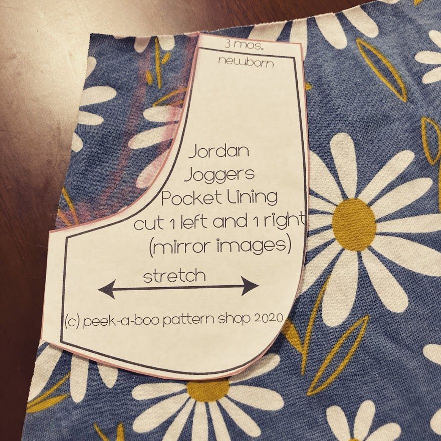 And wouldn't you know it, the dress pattern does not have pockets. I decided to adapt it to fit Saira's needs, and took out my Jordan Joggers pattern to examine the pocket. The Jordan Joggers have a sort of built in pocket, with the fabric behind the pocket showing somewhat, rather than a fully separate. (Google tells me this is called an inset pocket). I thought an inset pocket would look nice on this dress, so I set to work cutting off a piece of each side of the front skirt, then cutting out the pocket pieces. I only had to slightly alter the shape of the Jordan Joggers pockets to more accurately fit the cut of the dress.