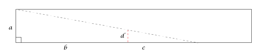 For example: The depth of my frame needed to be 36" (b) and the height of the board is 7.5" (a). Because we want to have the sides connect to the 2x4 lumber, we don't want a full triangle, we have a height d that is 3.5" that will cut the triangle short. c then becomes the missing length of board we need!