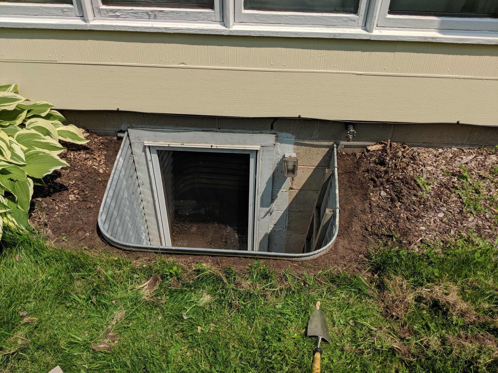 My window well had landscaping around it that butted up against the well. I had to remove the grass and chips to prepare the space around the well so that the frame sat level.