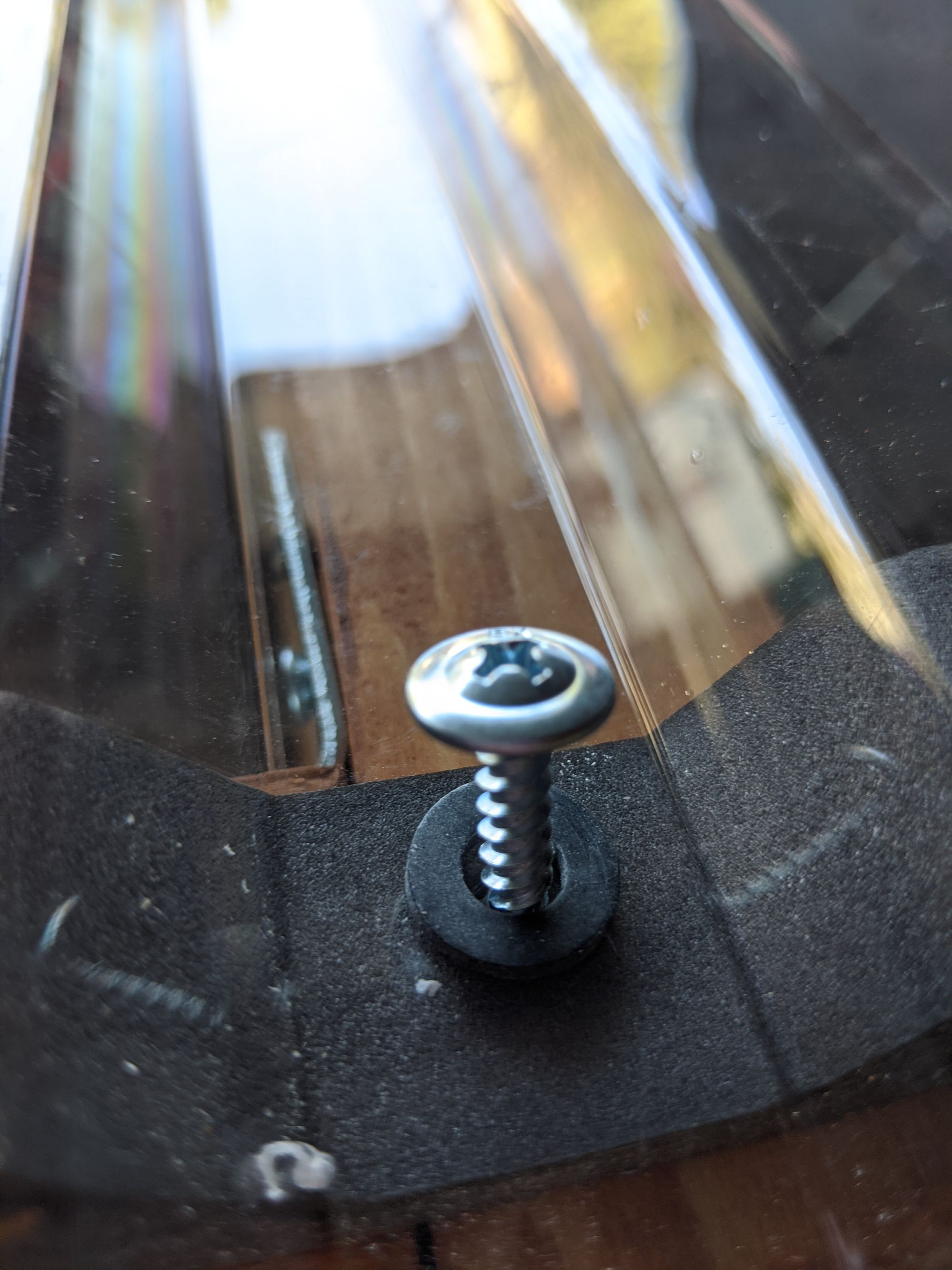 Use the lathe screws with neoprene/rubber washers to form a seal. It's fine to squish the foam a bit so things are tight.