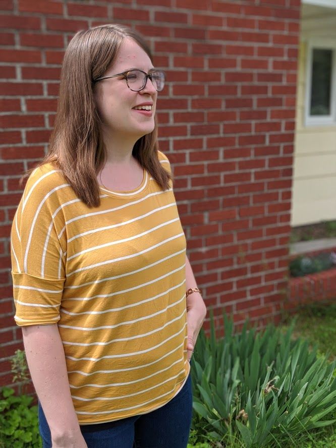I already envision myself making many more of these shirts, both for myself and friends of mine. I'm excited to be able to make them with flowered fabrics, other geometric shapes, or just my usual stripes!