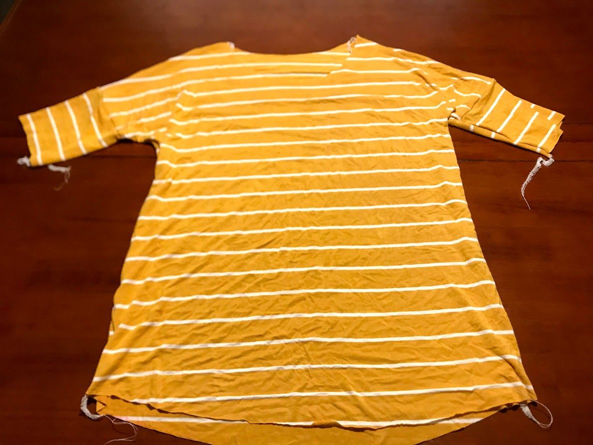 And of course, when I used my seem-ripper, I saw that there were now several big holes in the bottom of the shirt where I had tried to add the hem. Well, this sucks. Now I had to decide whether to trash the whole thing, or just make a shorter shirt, by about 3 inches. I decided I would try to make a shorter shirt, and at the very least, perhaps it would be a good gift for my preteen niece.