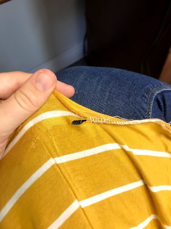 I tried again with the blind hem, and this time I checked, rechecked, and triple-checked that I attached everything correctly. I said a little prayer and sewed it together. It worked this time! I had a nice hem, and although the shirt was shorter than my original shirts, it was definitely still wearable and so comfortable!