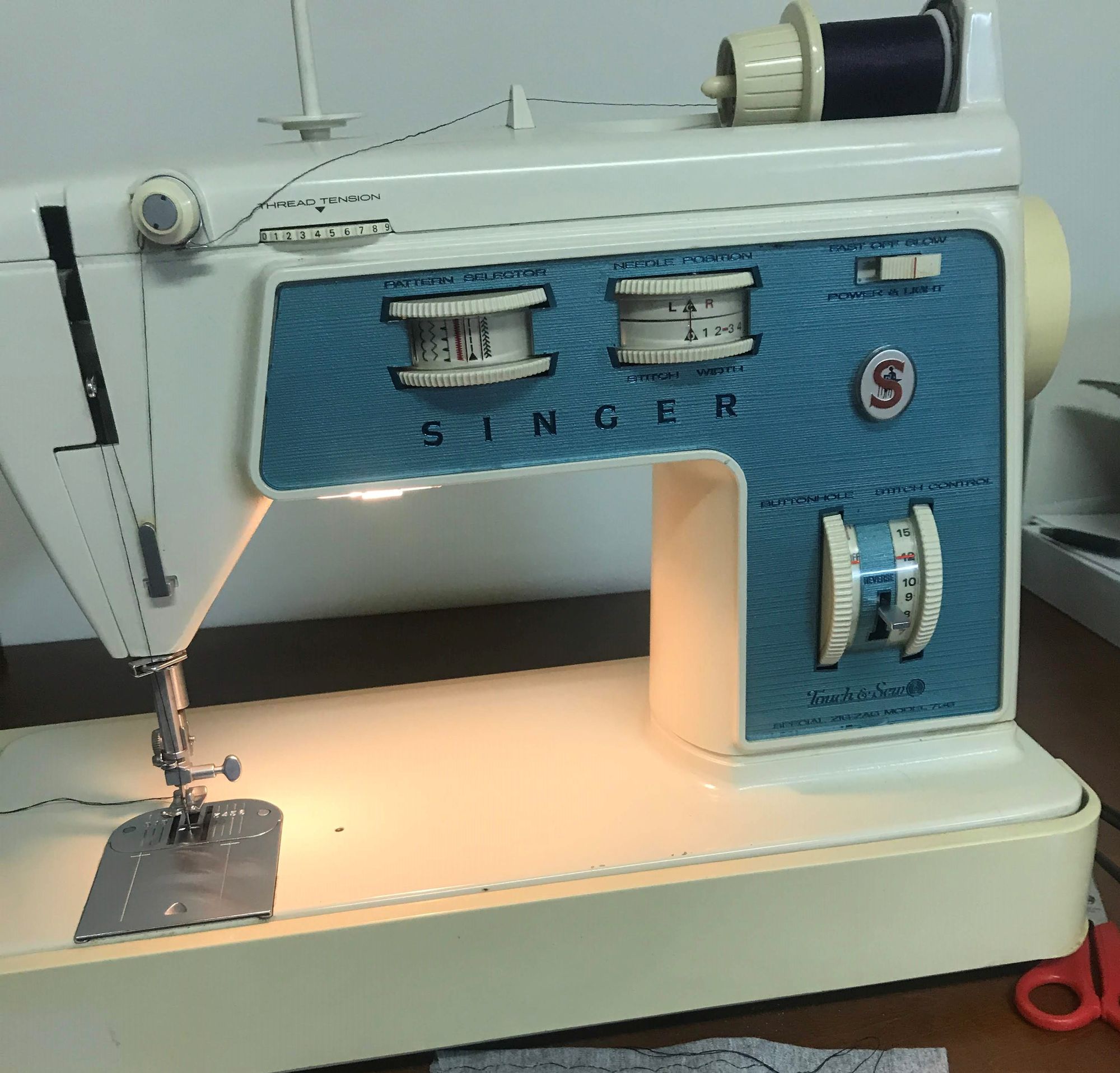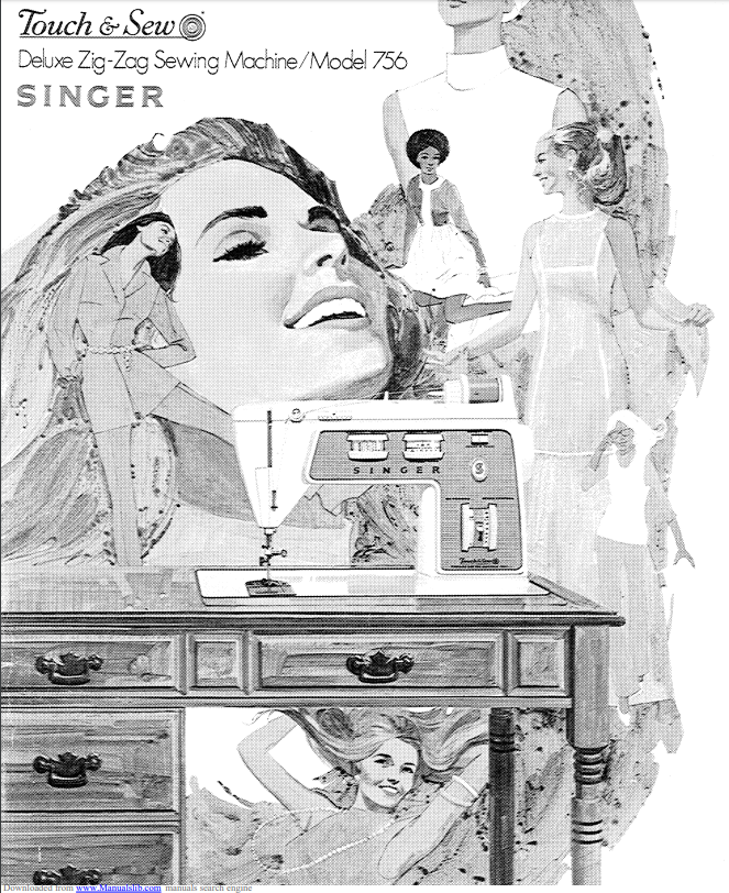 So I had this hulking beast of a sewing machine in my house for about five years before I said, well I guess I should learn how to use this thing. It's a Singer 756 Touch and Sew (Deluxe Zig-Zag!), which Google tells me came out in 1970. The cover of the instruction manual is fantastic.