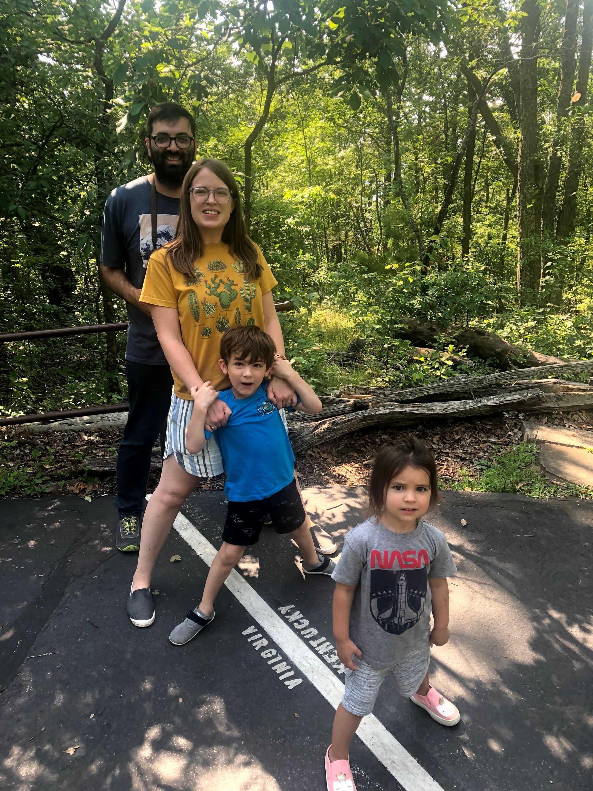 We broke up this leg of the journey with a stop at Cumberland Gap, a National Historic Park. It didn't disappoint. It offered an overlook with some beautiful views. Plus, you can literally have one foot in Virginia and one foot in Kentucky because it intersects both states. We all took photos straddling the state line.