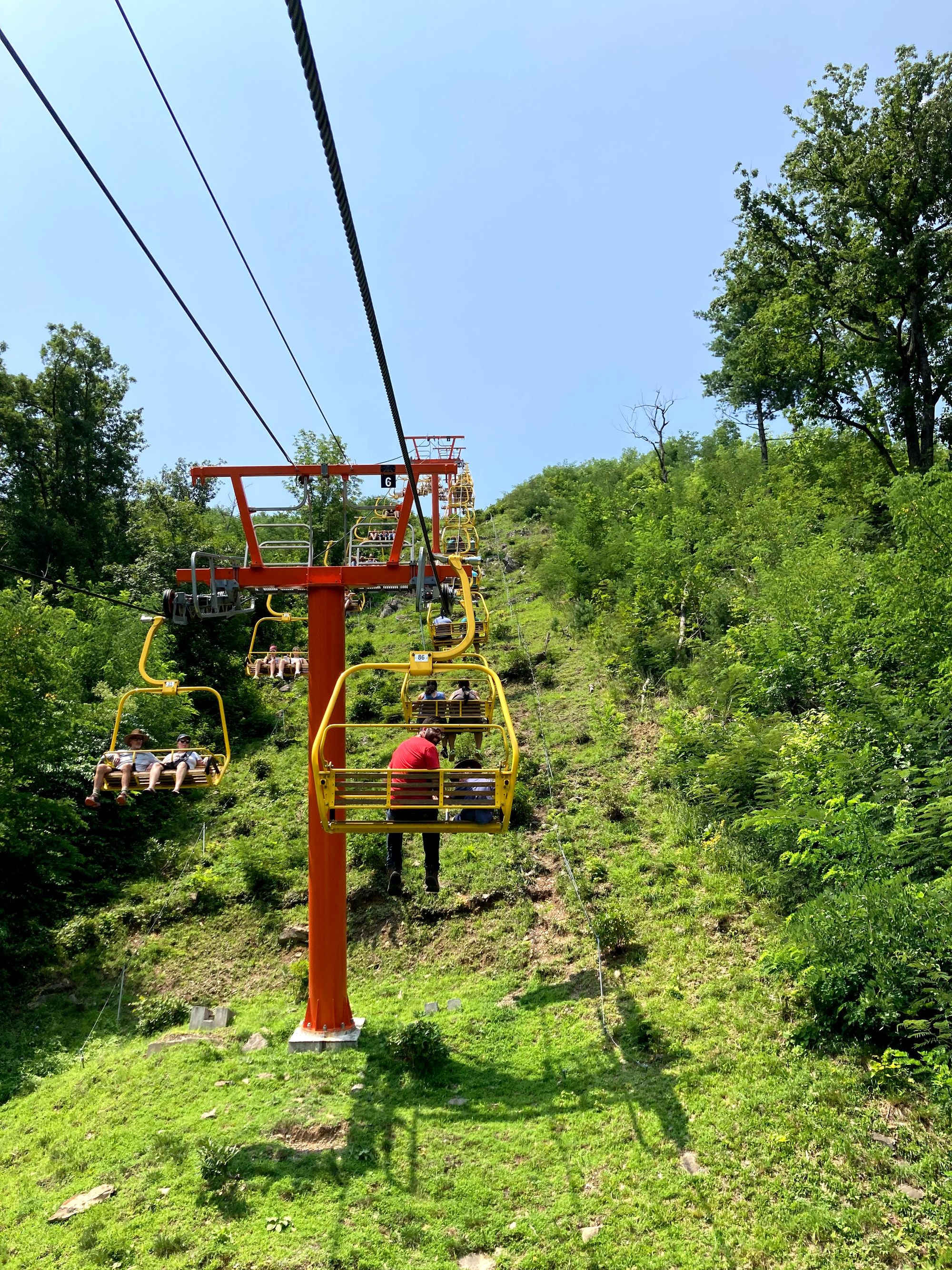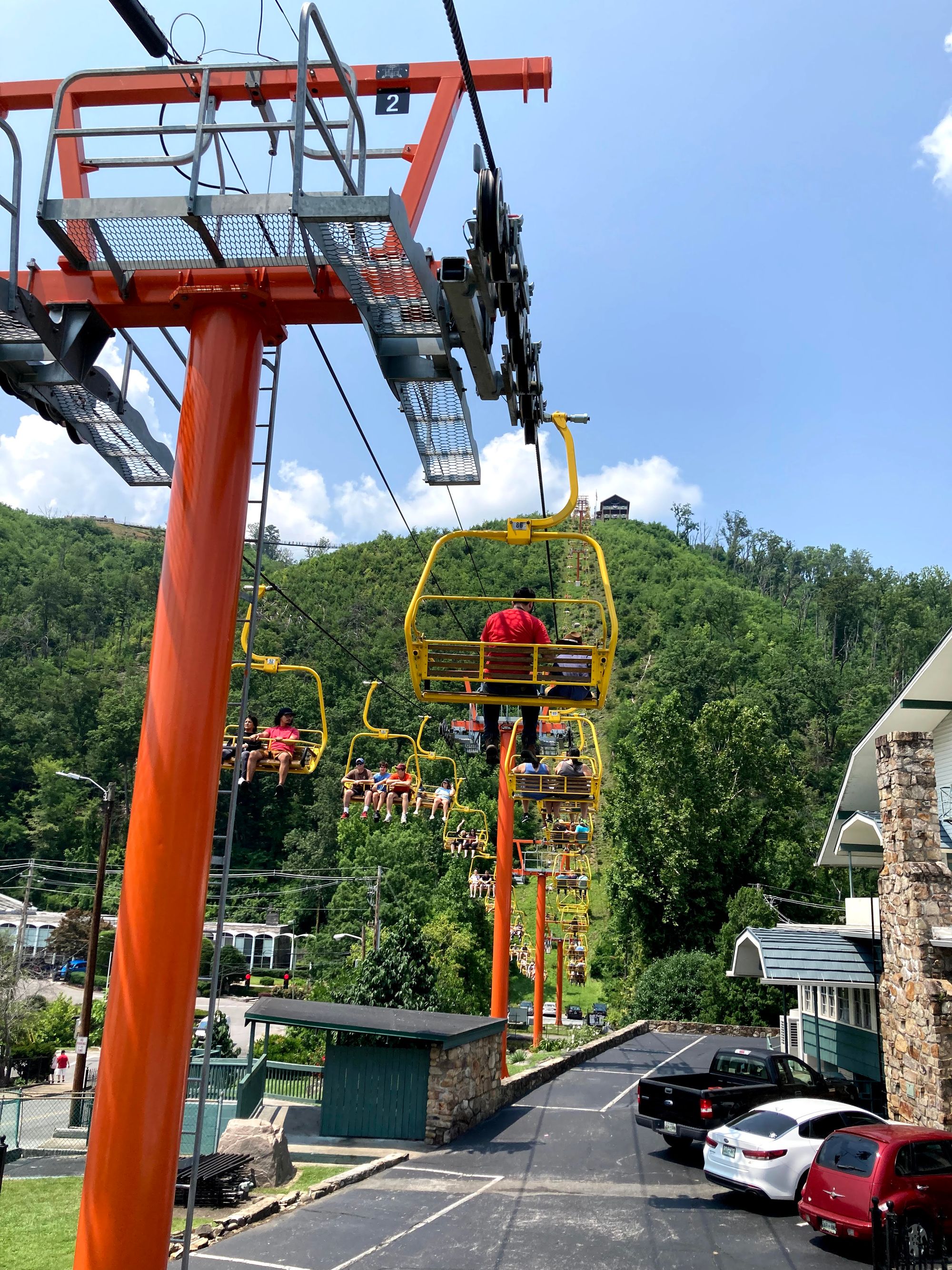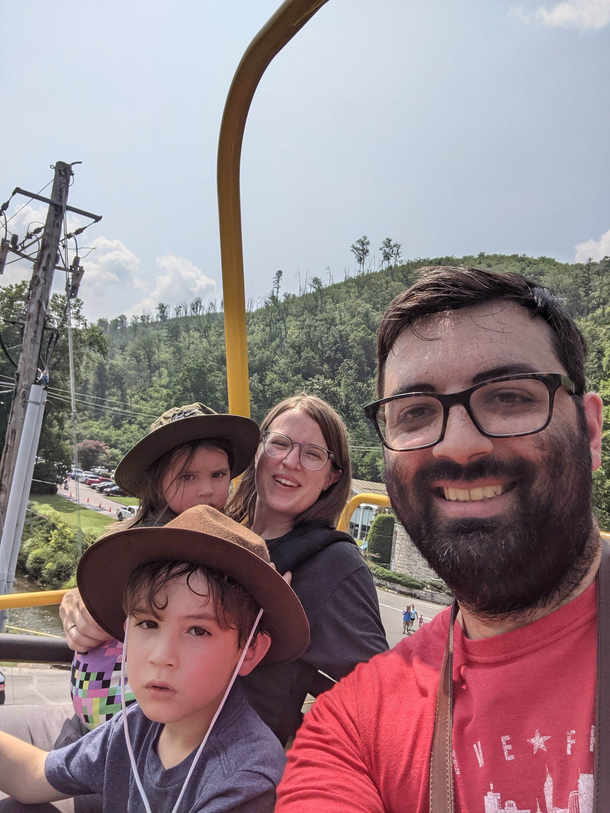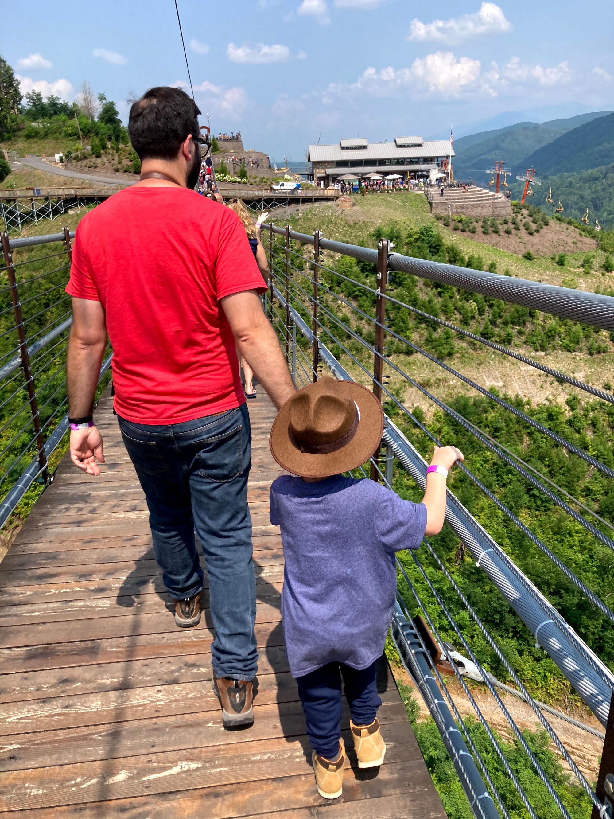 You take a ski lift up to the top of Gatlinburg and there's a bridge that spans two hills. It's very long and even features a transparent middle section to see the view below! The kids enjoyed the lift up but they were pretty fearful of the bridge. Still, they bravely walked across it with us!