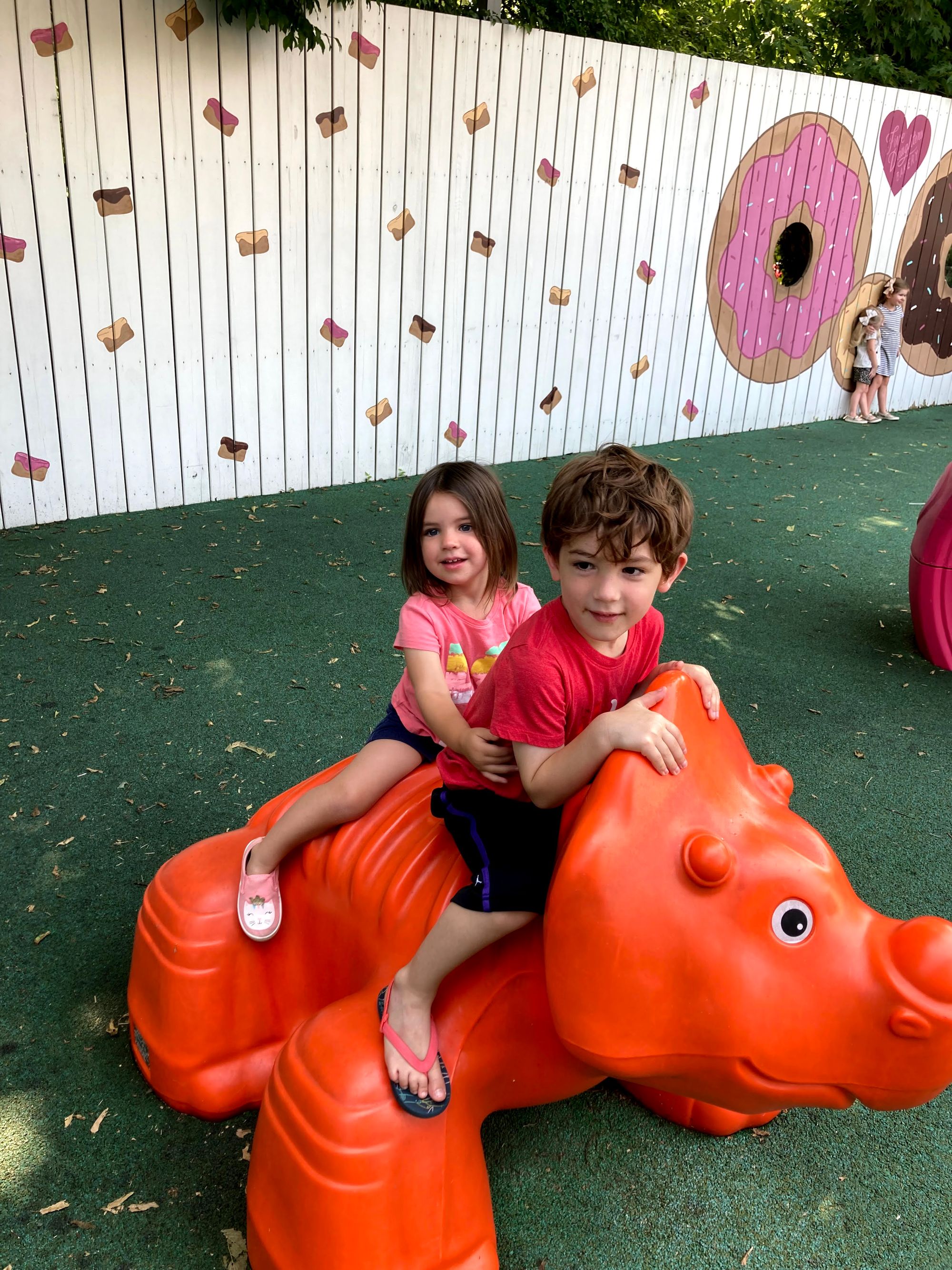It was like being at the state fair, with loud music, the smells of various foods and drinks, and inebriated people at 12pm on a Friday. The kids were pretty overwhelmed, though they enjoyed hearing live music through the windows of the honky tonks. We stopped at one window and listened to a band play "All the Small Things," and Rami was smitten.