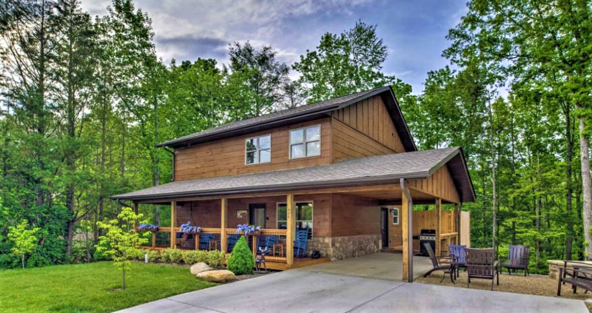 Now after having stayed we feel great about recommending the Blue Sky Cabin. It was fantastic and had so much room for all of us and the kids. What we really appreciated was that each room had private baths which made it much easier to stay with 3 groups of people. Every level has its own TV/game room so it's perfect for parties!