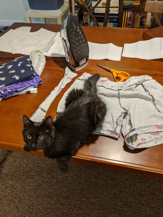 To start, I wanted to make my sister a pair of joggers for Christmas. I asked her for her sizing and she decided on a size large. So I printed the pattern and cut it to a size large. While I was working through Rami's Captain America costume, I thought it might be fun to make myself some quick jogger shorts. After all, I had just made so many items for Christmas presents and for the kids, didn't I deserve something too?