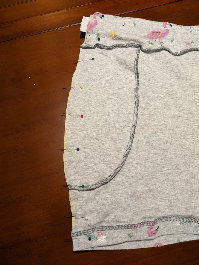 I basically just took the large-sized joggers and measured out how much I wanted to chop off the sides. I was slightly worried because the java joggers pattern has a lovely pocket situation, and I didn't want to end up cutting off too much of the pockets. I decided to cut off 1 inch along the top 3/4 of the shorts, then gradually cut in at an angle to 2 inches at the bottom. The bottoms of the shorts were the baggiest area, and could stand to lose a little more fabric. Plus, the bottoms being thinner would not affect the pocket sizing.