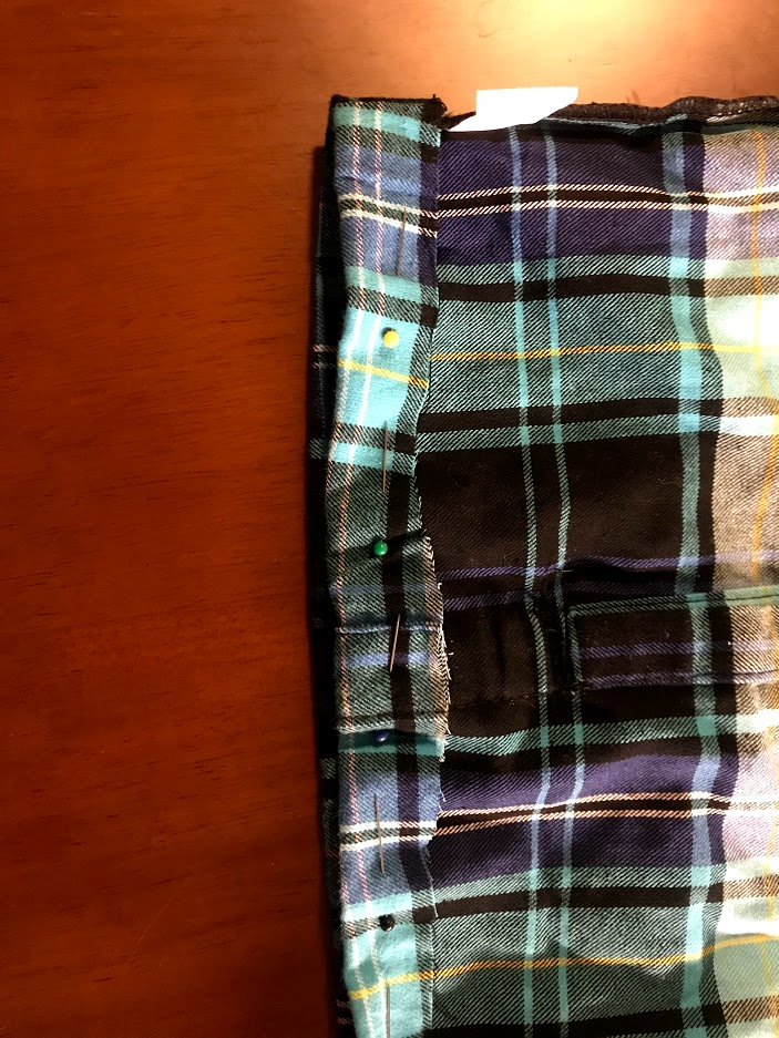 Pretty easy! Next, I ironed in an inch hem and pinned it. Again, easy.