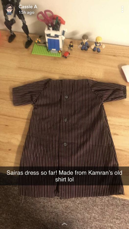 My first choice for projects on my own, was dresses for Saira, made from Kamran's old button-up shirts. (Kamran goes by "papa" at our house). Kamran had just gotten rid of several old shirts, so I squirreled them away and got to work.