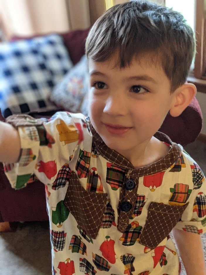 Rami is in love with his new shirt shirt. He was excited to wear it to school and loves the pockets. He asked me to make him more of these button-ups. I'm hoping to take both kids to a fabric store and pick out some fun fabrics for the Cape Cod project. Saira already let me know she wants another kitty dress, but in this style. Rami expressed some interest in a pirate shirt. I am just soaking in this time when the two of them are still willing to wear things I make for them.