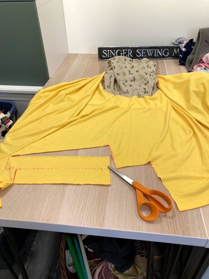 I knew what my next project had to be. With my new sewing room almost completely in order, I've been trying to devise ways to use up some old fabric. I have so many scraps that are maybe big enough to make things for Saira and Rami, but nothing much bigger than that. I also decided to scrap my yellow skirt-to-dress project. Even though I was excited to make it and happy that it worked out well, I don't wear it and I have gotten so much better and more sophisticated in my sewing technique that I don't even want to show it off.