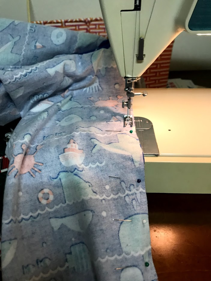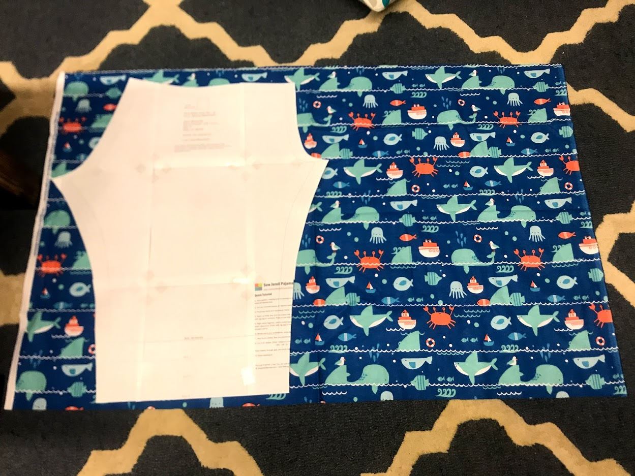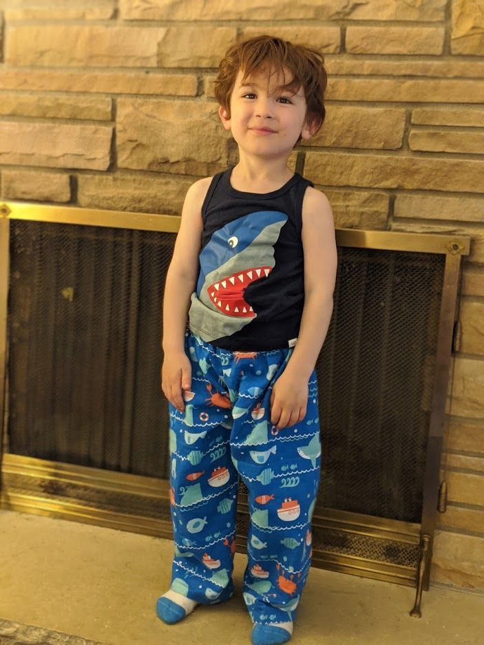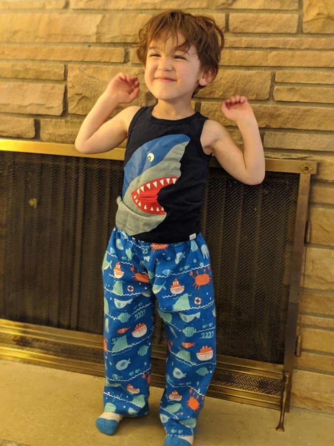 I was excited about this fabric - Rami recently watched Finding Nemo (he has now seen like 5 movies total; we have started to have "movie nights" due to quarantine, though usually we have no screen time for the kids). It was fun to watch Rami name all the Nemo characters he could find on the pants - Bruce, Dory, Nemo, Marlin, etc.