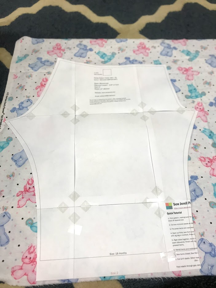 I ended up finding a free sewing pattern from Sew Jereli, which I located through AllFreeSewing. The pattern was super easy; just print and put it together! Easy for a beginner, and very quick. I sewed up both pairs in two nights after the kids went to bed (for reference, that means I start around 8 and finish around 10. That is, if Saira is cooperating and will go to sleep right away!)