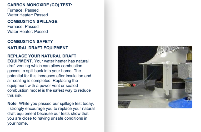 The other recommendation they made that I was not aware of was upgrading the natural draft equipment on the water heater because when I do insulation and air sealing, my water heater could leak combustible gases back into the house. 😱