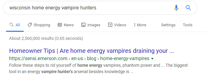 I don't think searching "Wisconsin home energy vampire hunters" will bring up much. Right?